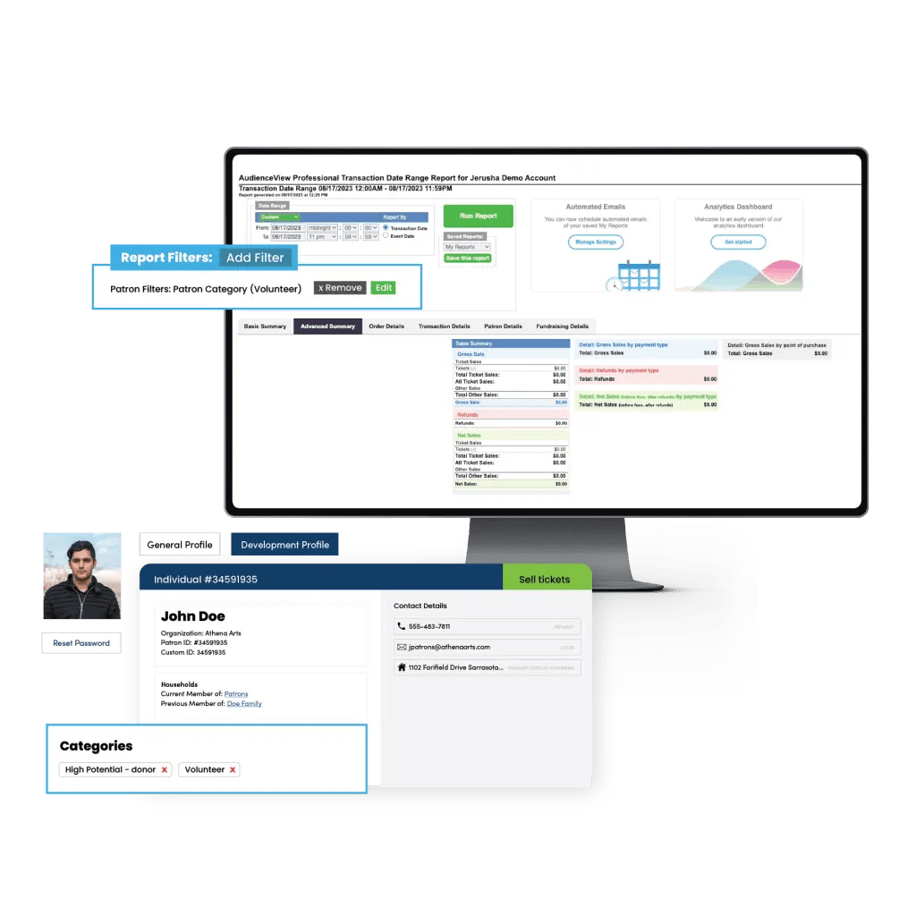 AudienceView delivers 25+ pre-built reports, real-time dashboards, and automated scheduling so teams can access insights instantly.